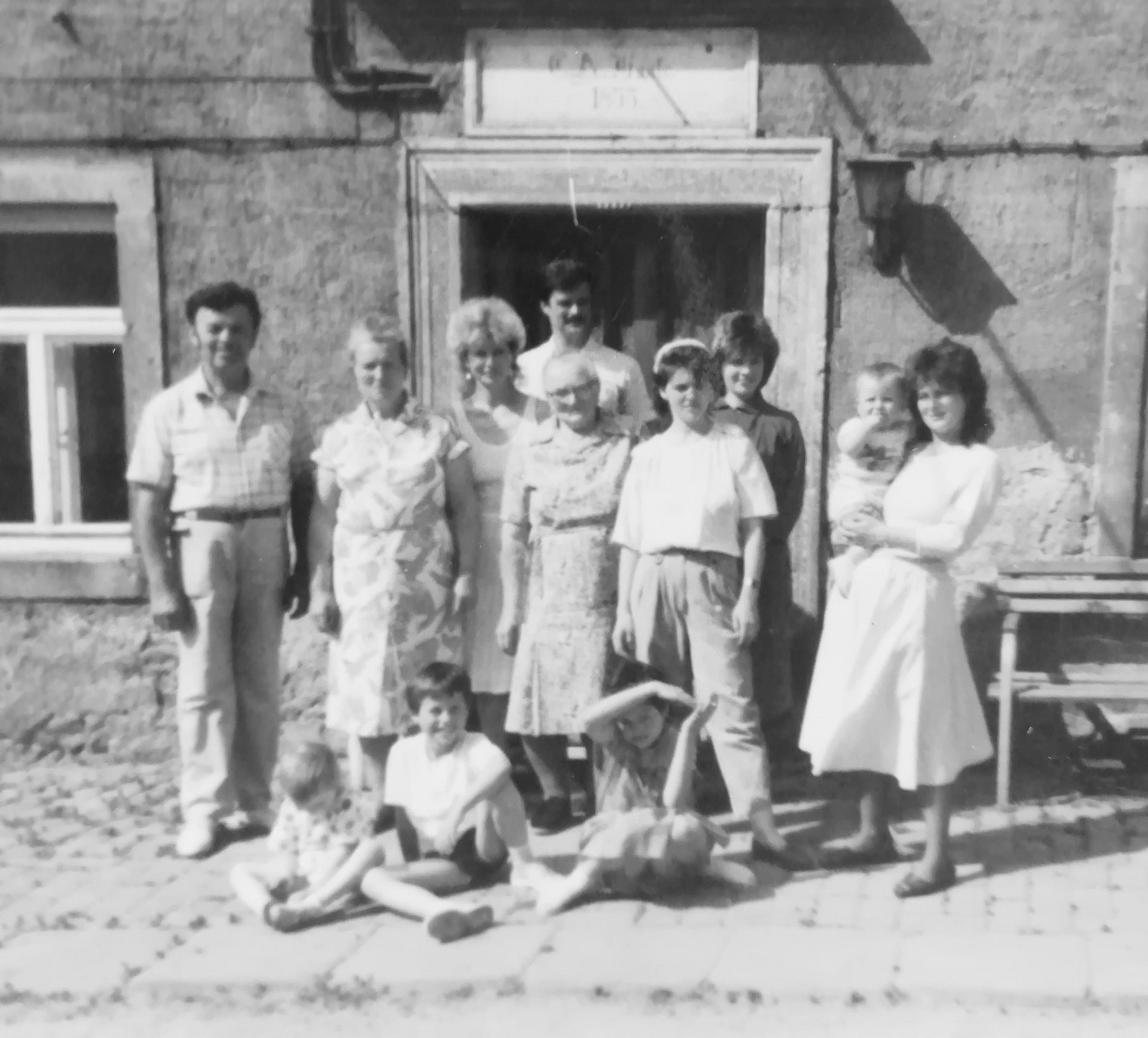 Unser Vater Erhard hat bis zur Wende 1990 in der Milchproduktion gearbeitet. Unsere Mutter Christa hat sich als Hausfrau um die 4 Kinder, sowie den großen Garten und die Hoftiere gekümmert. 1990 wurden, mit dem Wegfall der Genossenschaft, die Ländereien wieder in den Privatbesitz überführt. Von 1991 bis 1996 waren unsere Eltern selbstständig im Obstbau tätig. Danach sind Sie in den Ruhestand gegangen. Die landwirtschaftliche Tätigkeit auf dem Hof wurde aufgegeben, da sich alle 4 Kinder beruflich anderweitig orientiert hatten.